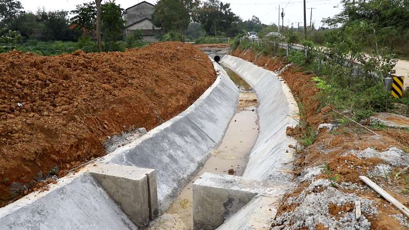在白衣镇红光村,一条崭新的灌溉沟渠已初具雏形。结合沟渠周边地形地貌和农业生产需要,施工人员正在进行坡度整平、土块清理、沟底压实等精细化施工作业,确保投用后水渠能够线型顺畅、水流无阻。