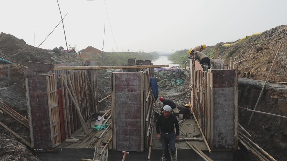 项目现场负责人介绍:“这个节制闸的作用是抗旱排涝,在旱季的时候保证上游水位的高度,在雨季的时候防止外围的高水位回灌。”