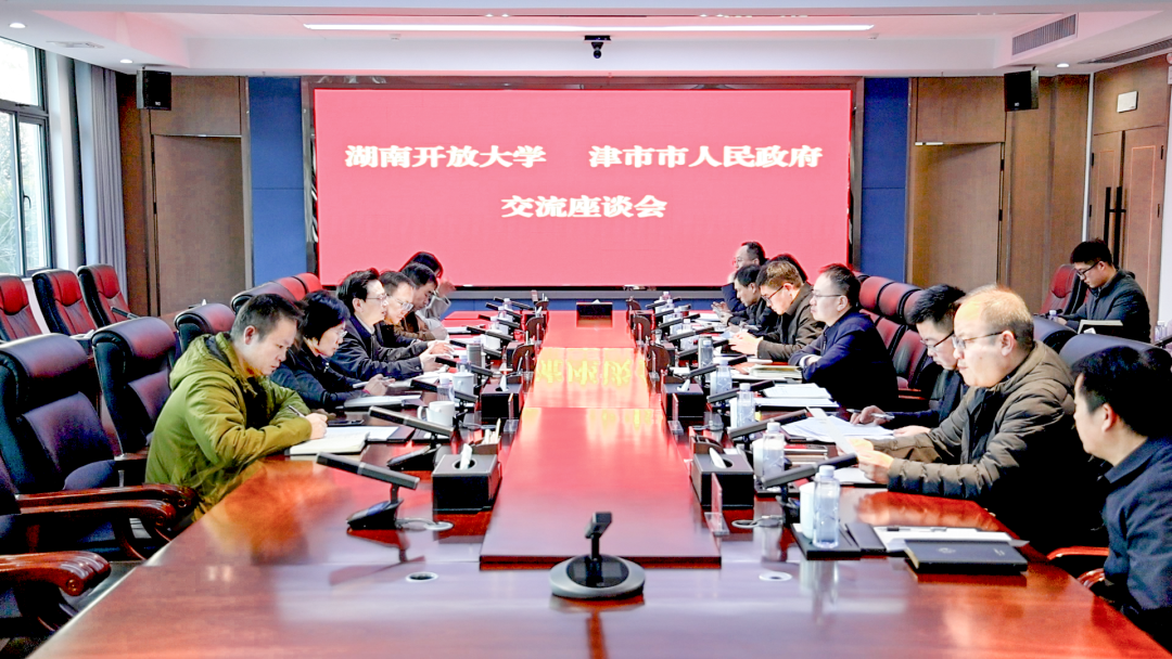 1月15日,湖南开放大学党委委员、副校长、教授陈志国一行来津调研。市委副书记、市长彭子晟参加座谈。