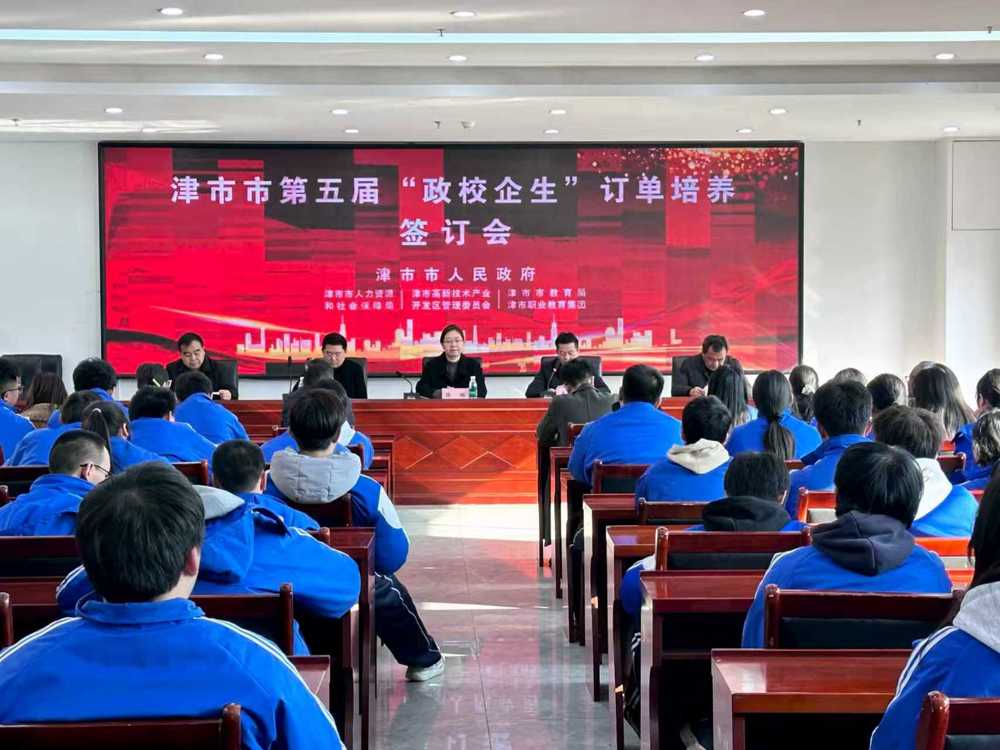 1月13日,津市市第五届“政校企生”订单培养签订会在津市职业中专学校举行。