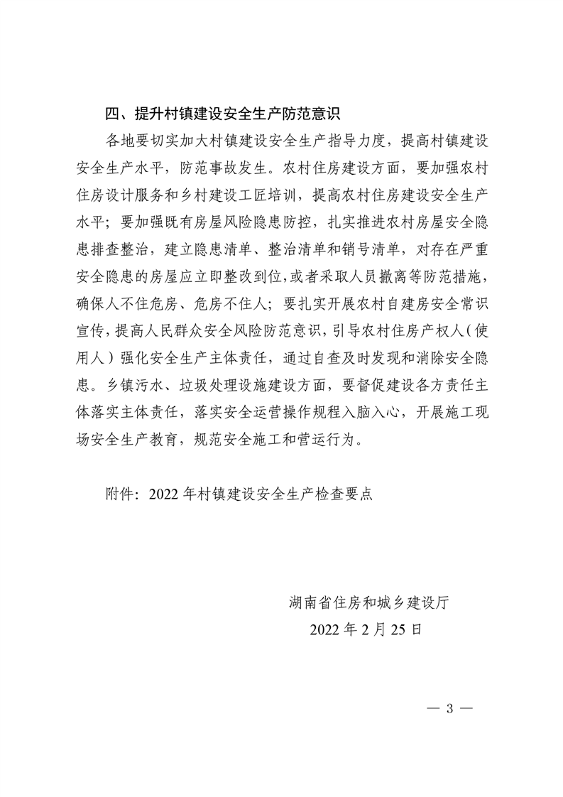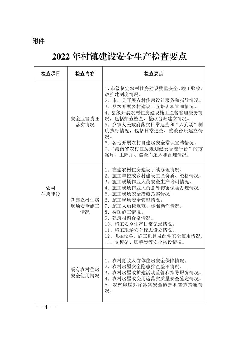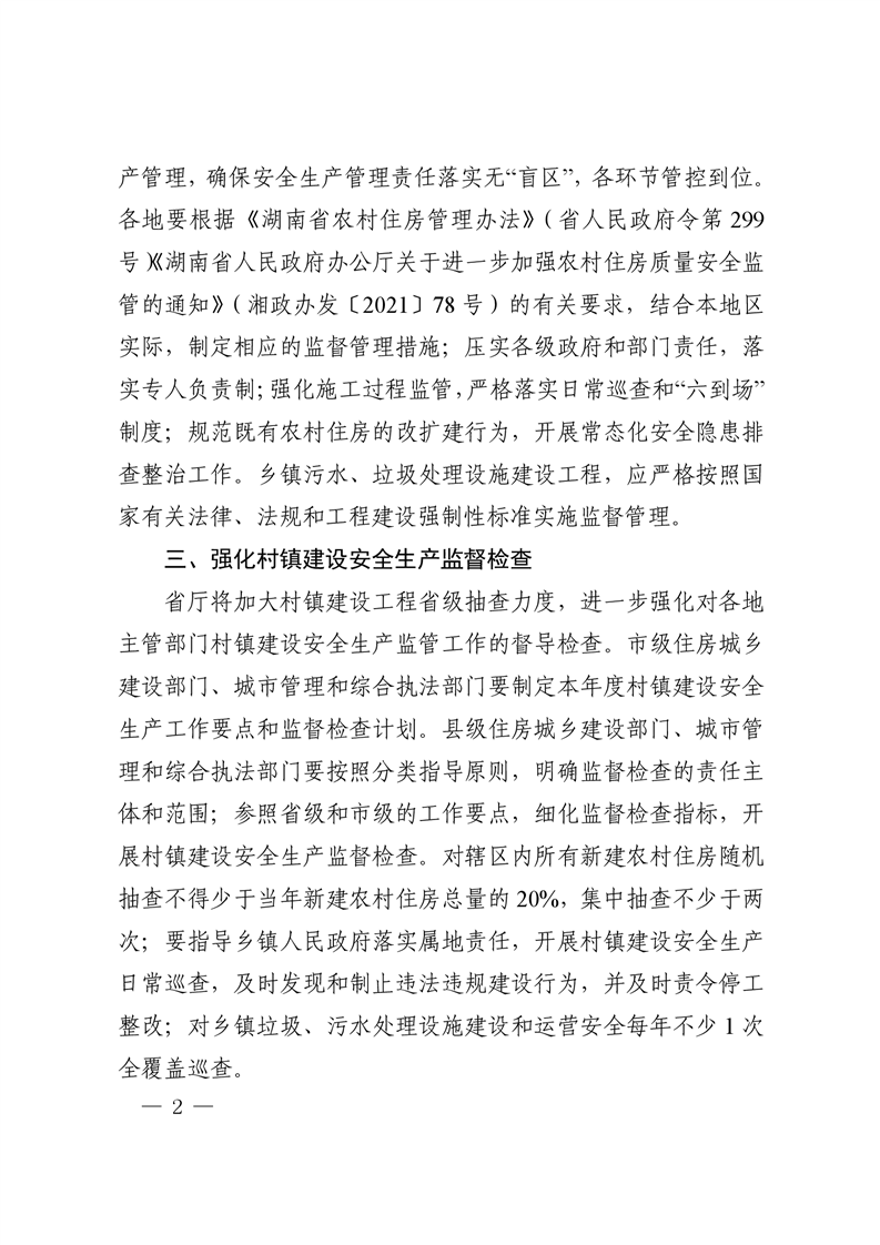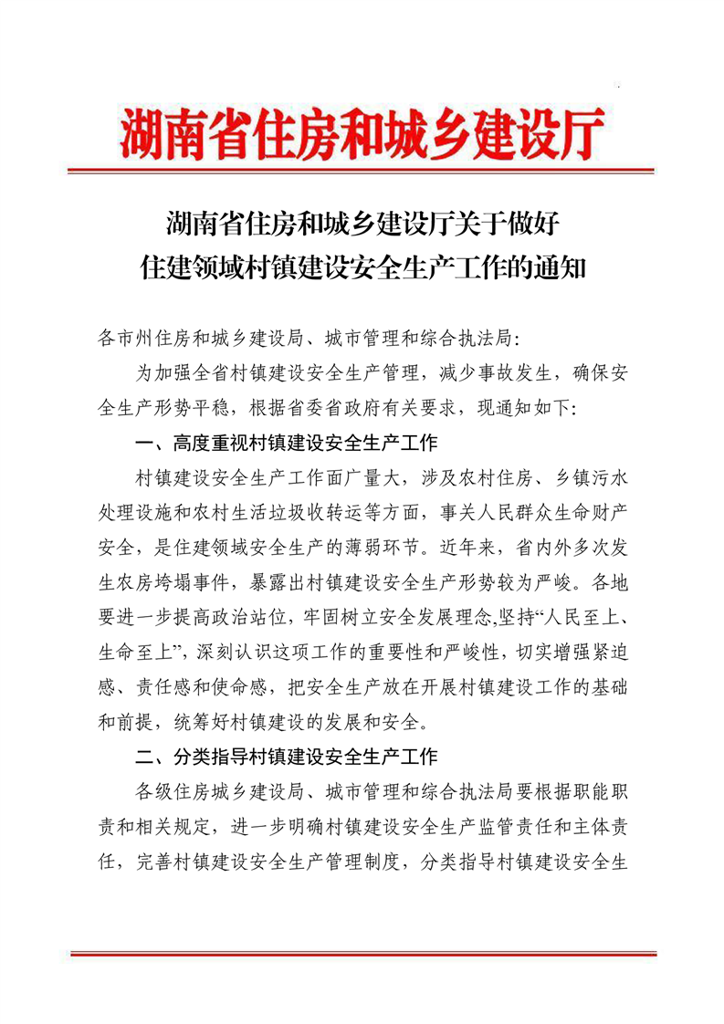 湖南省住房和城乡建设厅关于做好住建领域村镇建设安全生产工作的通知