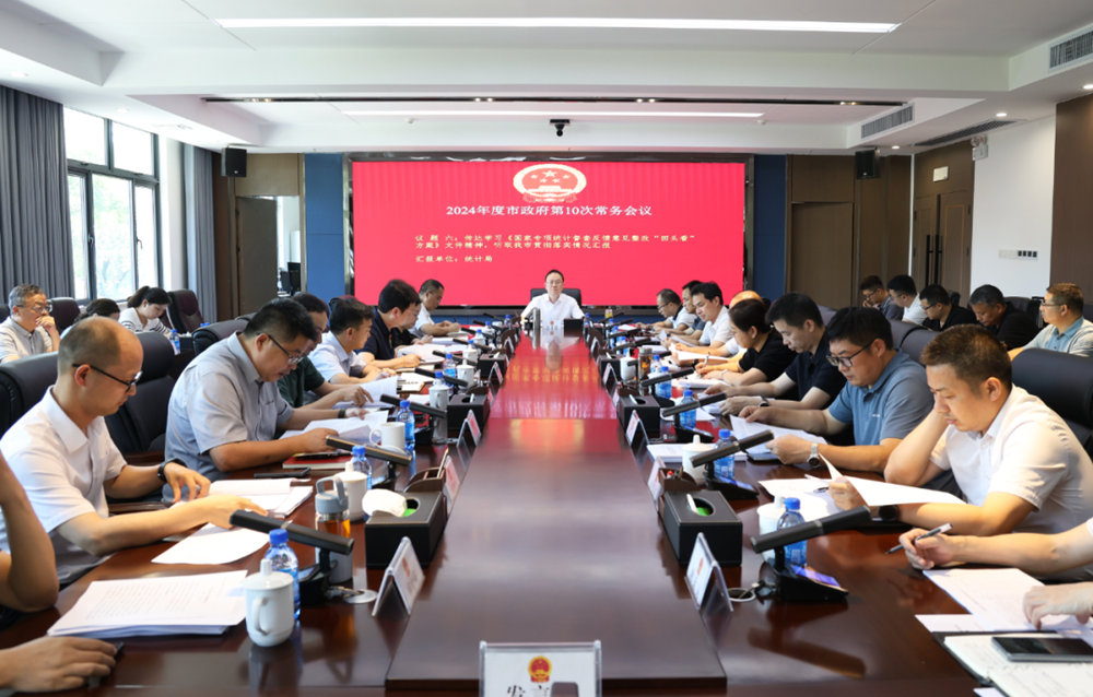 7月30日,市委副书记、市长彭子晟主持召开2024年度市政府第10次常务会议,传达学习党的二十届三中全会精神、习近平总书记重要讲话重要指示批示精神及上级相关会议和文件精神,听取有关工作情况汇报,安排部署下阶段工作。