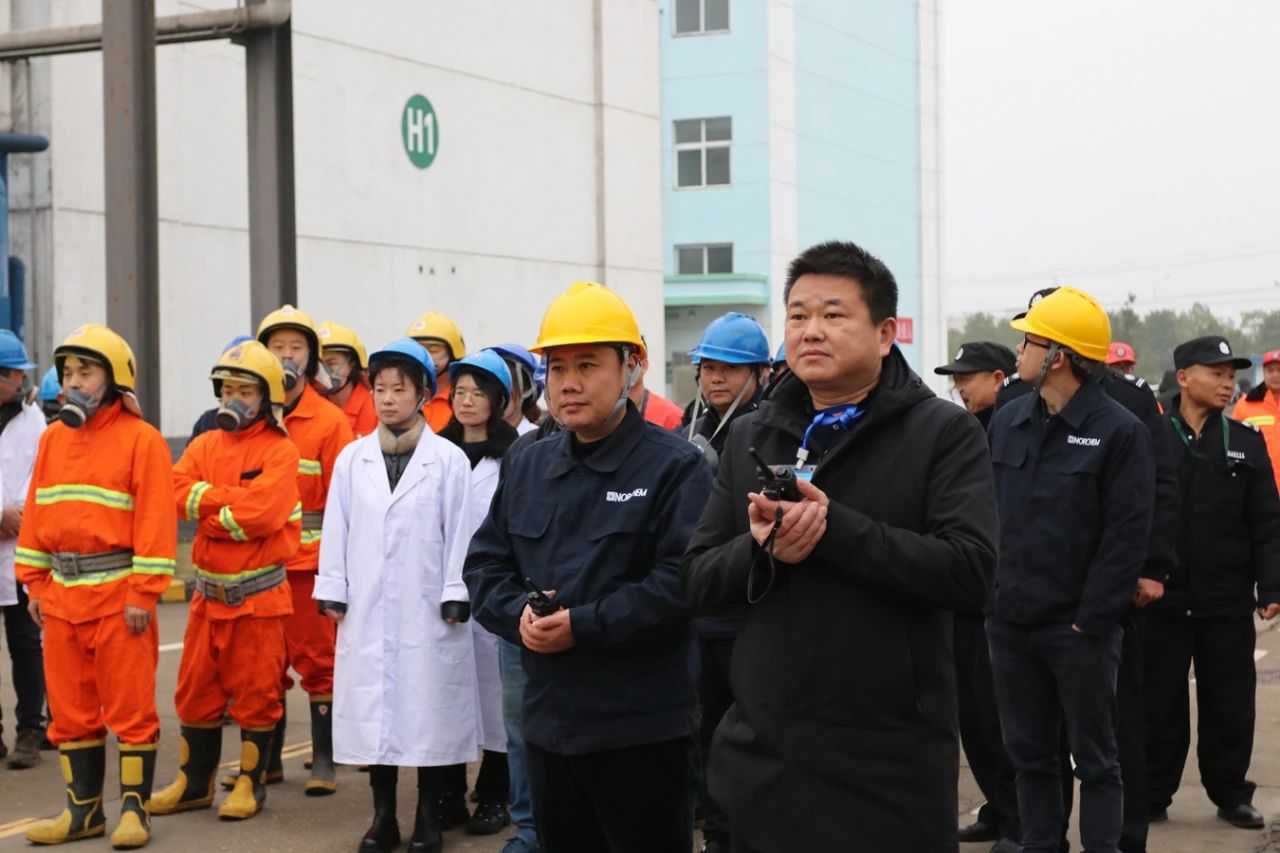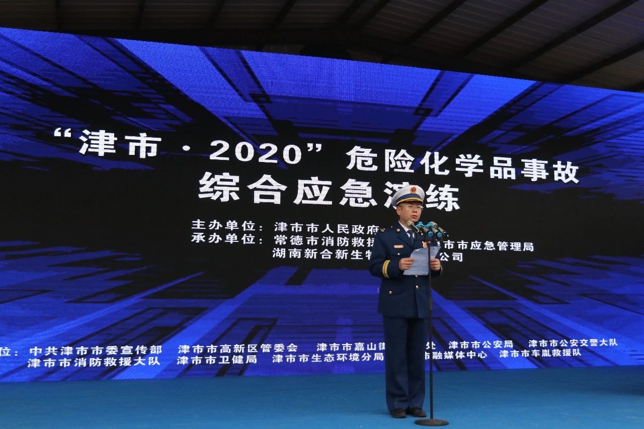 “紧急呼救,罐区甲苯储罐法兰垫子部位发生泄漏,2名员工中毒, 请求支援……”,12月4日8时30分,“‘津市2020’ 危险化学品事故综合应急演练”在湖南新合新生物医药有限公司举行,演练总指挥由副市长高力担任,公司现场指挥由公司常务副总经理刘喜华担任,此次演练检验了该公司突发事故应急处置的组织、指挥、反应能力,强化了政府各级相关部门和企业安全生产风险防控意识,完善安全应急协调联动救援体系,提高应急处置能力。常德市消防救援支队副支队长龚红兵,市人民政府副市长易榕,高力,开发区管理委会主任彭发利、市应急管理局局长刘康新等领导参加演练,全市安全生产委员会成员重点单位相关负责人,重点危化企业和工贸企业分管安全负责人和安全员等200余人到场观摩。