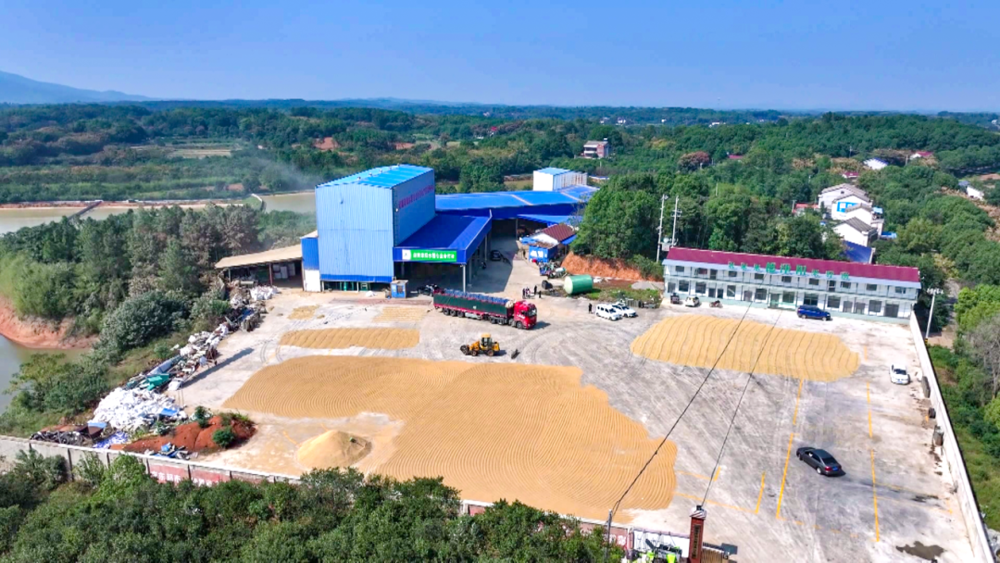 走进药山镇津阳水稻专业合作社粮食烘干基地,伴随着阵阵机器轰鸣声,金黄色的稻谷被源源不断地送入烘干设备,现场一派繁忙景象。