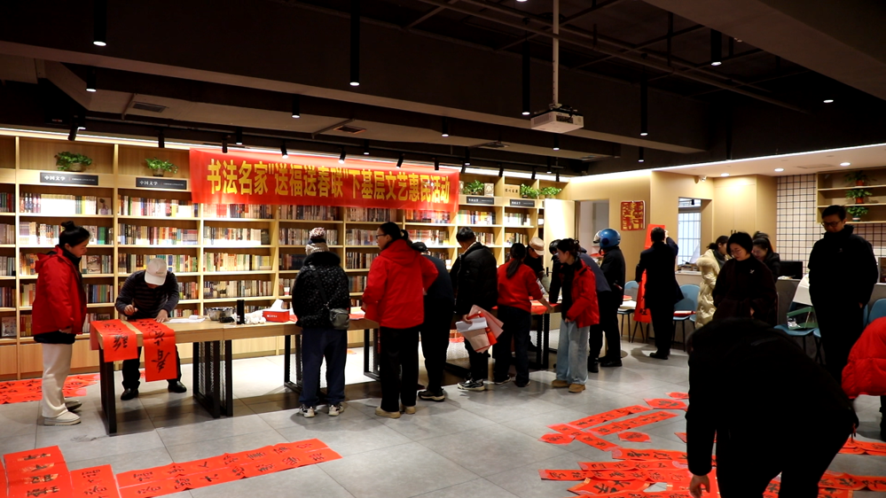 在新华书店活动现场,中国书法家协会会员、湖南省书法家协会理事、长沙市书法家协会副主席文佐,岳麓印社陶印创作委员会主任庄函恺与我市书法家协会的会员们齐聚一堂,铺纸运笔、挥毫泼墨。行书、楷书等各式书体各显神韵,一幅幅笔力遒劲、寓意吉祥的春联和“福”字跃然纸上,将美好祝福寄托于翰墨之中。
